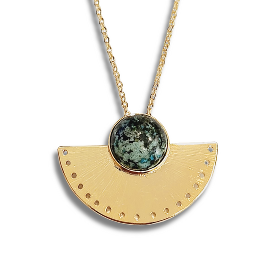 Collier Penelope plaqué or serti d'un Jaspe Africain