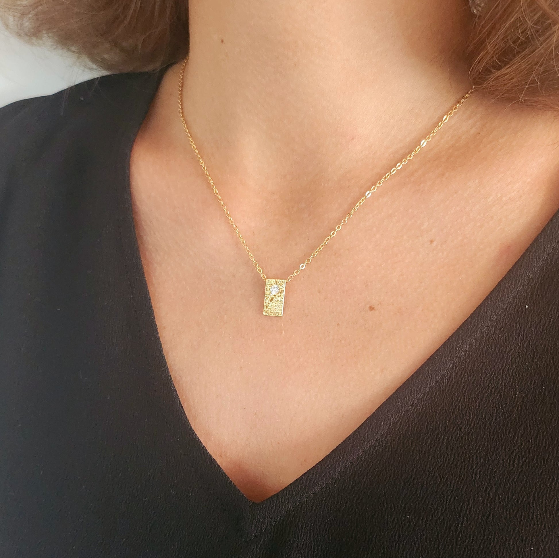 Collier en Plaqué Or serti d'un grenat, motif dentelle